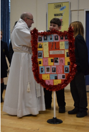 Throughout the Mass, students participated with enthusiasm, proclaiming The Word, reading the prayers of the faithful, altar serving, and joining in the hymns. They were reminded that, like each of our House Saints, they are called to make a difference in the world by showing kindness and compassion to those around them.
