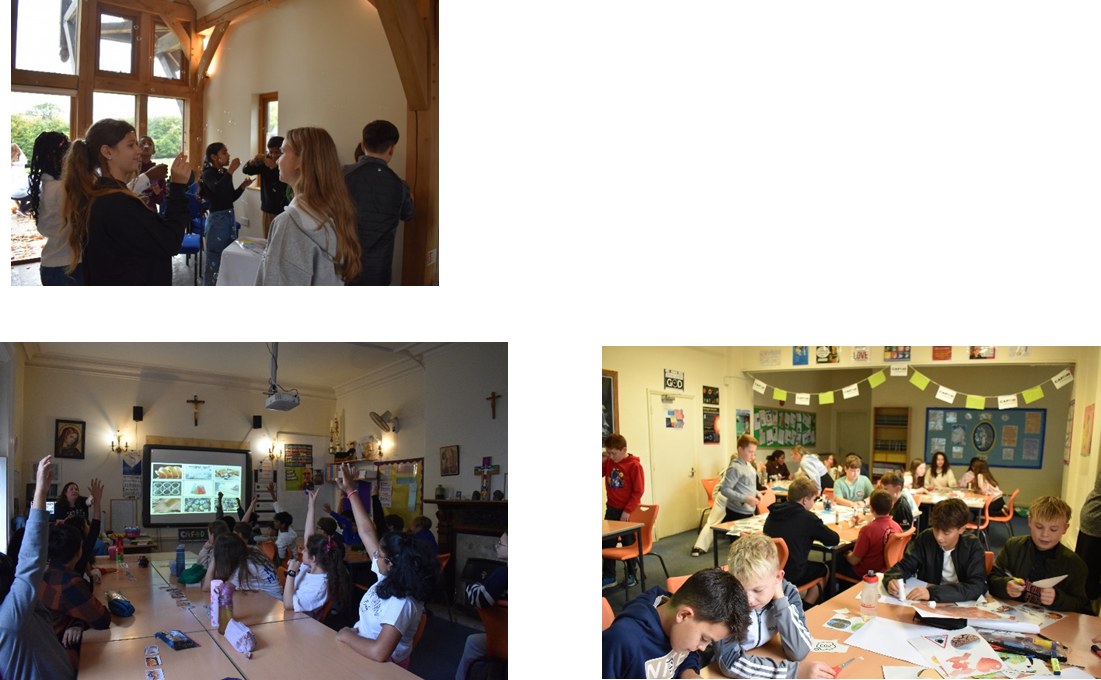 The theme of the year 7 retreat day was “God’s gift of creation”. In Genesis 1:26 and 1:28, God gives people “dominion” over creation. From the beginning, God asked humans to care for one another and for all creation. We are to act as caretakers or stewards of creation. The basis of all stewardship can be traced back to our creation. During the day we focused on how we can be good stewards of God’s creation through a range of activities. We were blessed with a beautiful Autumn day which enabled us to make the most of the beautiful grounds surrounding the chapel and helped pupils to reflect and pray on the beauty of the world and all the things they are grateful for.