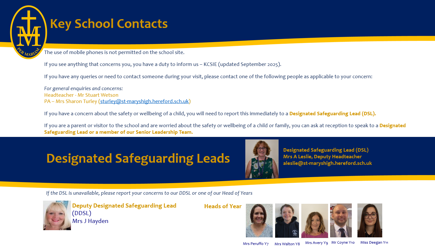If you have a concern about a child please refer to the Key Contacts information below or email safeguarding@st-maryshigh.hereford.sch.uk